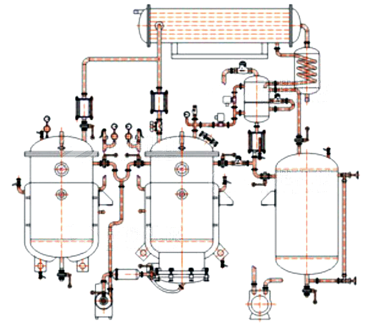 凝成冷凝液,回落到提取罐內。所有由溶劑產生的蒸汽,都通過熱交換成為冷凝液回到提取罐內,二次蒸汽在過程中得到充分利用,形成新